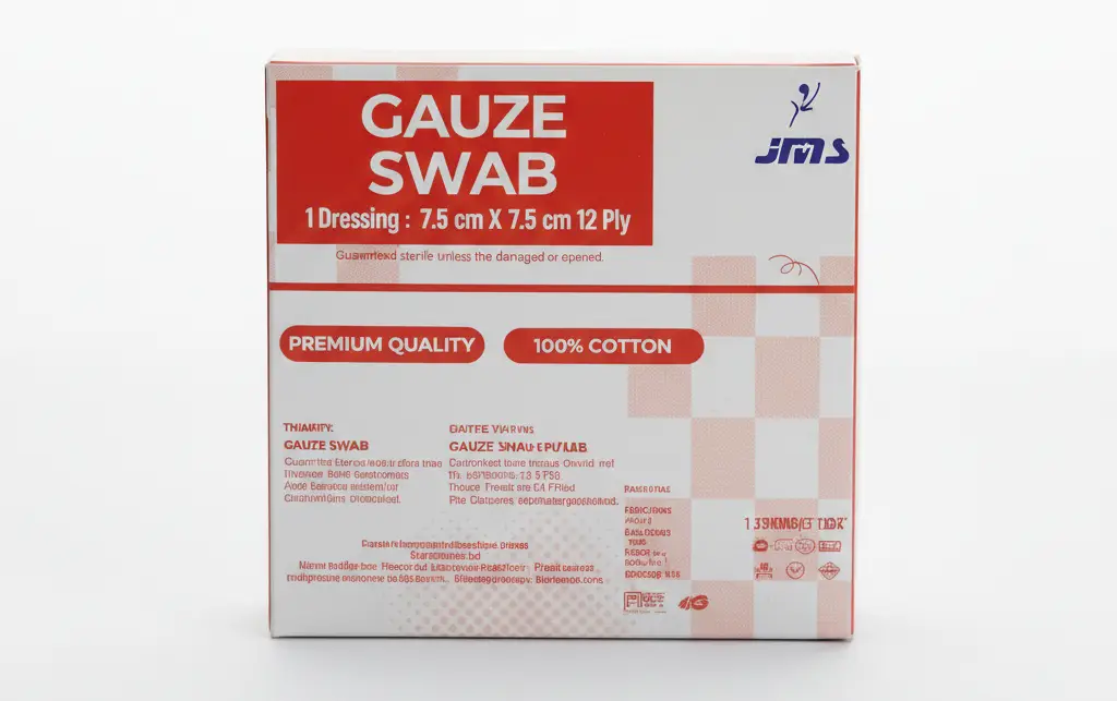 Full Product Name: Gauze Swab — 1 Dressing : 7.5 cm X 7.5 cm 12 Ply.